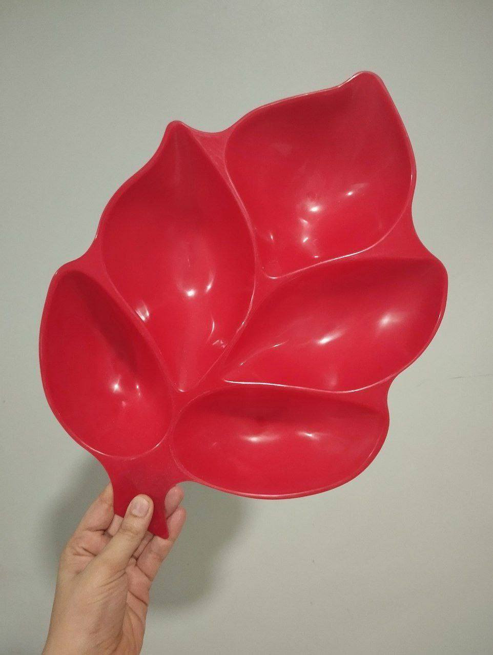 طبق تسالي ومكسرات بلاستيك مقوي عالي الجوده (( شكل ورقه شجر قطعه واحده لون احمر- مقاس 39سم*25سم )) من رنا ستور