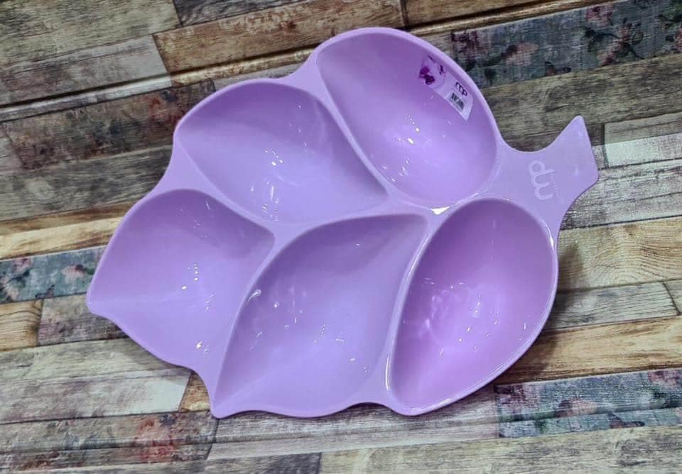 طبق تسالي ومكسرات بلاستيك مقوي عالي الجوده – شكل ورقه شجر ( شكل ورقه شجر قطعه واحده لون بنفسجي فاتح- مقاس 39سم*25سم )من رنا ستور